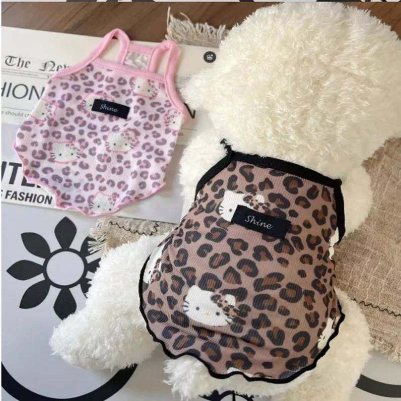 เสื้อผ้าสัตว์เลี้ยงใหม่ฤดูใบไม้ผลิฤดูร้อน2025เครื่องเทศสาวๆผ้าไอซ์ซิลค์พิมพ์ลายเสือดาวเนื้อผ้าเย็นใส่สุนัขแมว