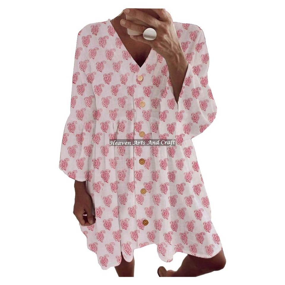 ชุดเดรสผ้าฝ้ายพิมพ์ลายบล็อกสำหรับฤดูใบไม้ผลิและฤดูร้อน เสื้อผ้าฤดูร้อนสำหรับผู้หญิง ขายส่งจากอินเดียและปากีสถาน