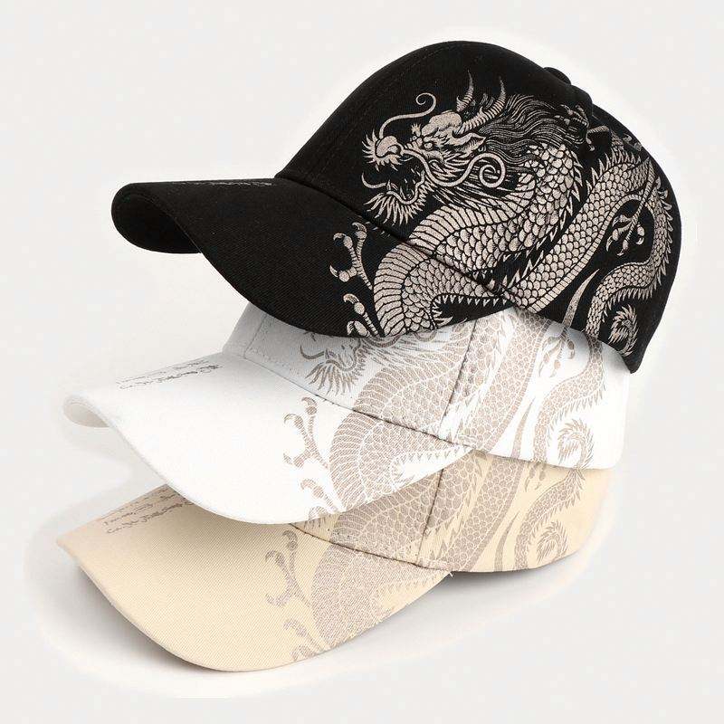 หมวกเบสบอลผ้าฟลีซพิมพ์ลายนูน 6 แผง สไตล์จีน ลายมังกร แฟชั่นฮิปฮอป สำหรับผู้ชายและผู้หญิง ฤดูใบไม้ผลิ ฤดูร้อน