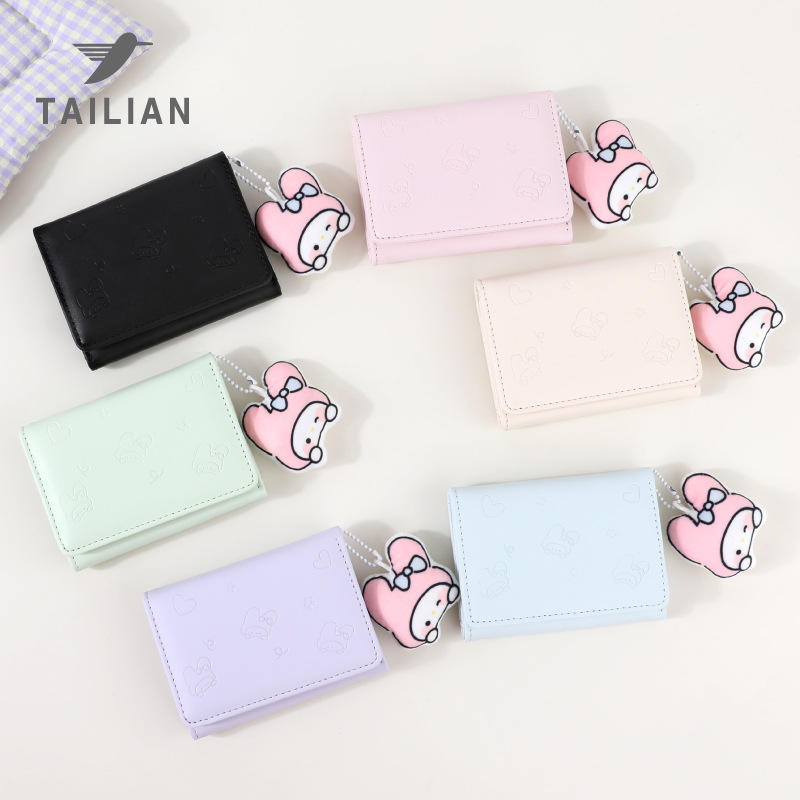 กระเป๋าใส่เหรียญผู้หญิงน่ารักเรียบง่าย สีพื้น หนัง PU ลายการ์ตูนโจ๊กเกอร์ กระเป๋าสตางค์มินิแบบซิป กันน้ำ รุ่นสั้น ขายส่ง สำหรับฤดูใบไม้ผลิและฤดูร้อน