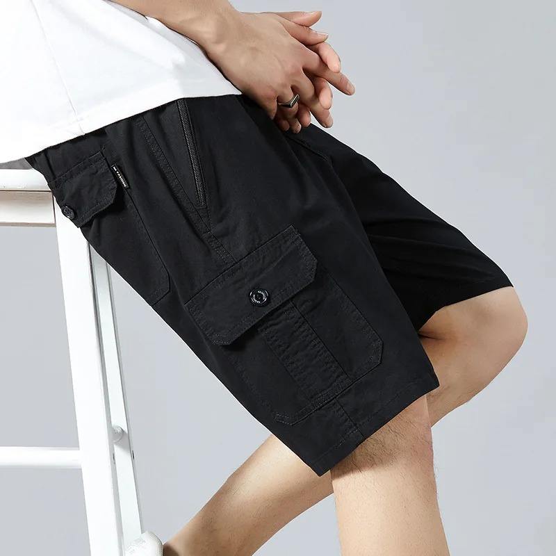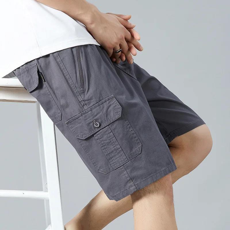 เสื้อผ้าแฟชั่นผู้ชายเอวสูงแบบผูกเชือกสำหรับฤดูใบไม้ผลิและฤดูร้อนกางเกงขาสั้นลำลองทรงหลวมสีพื้น