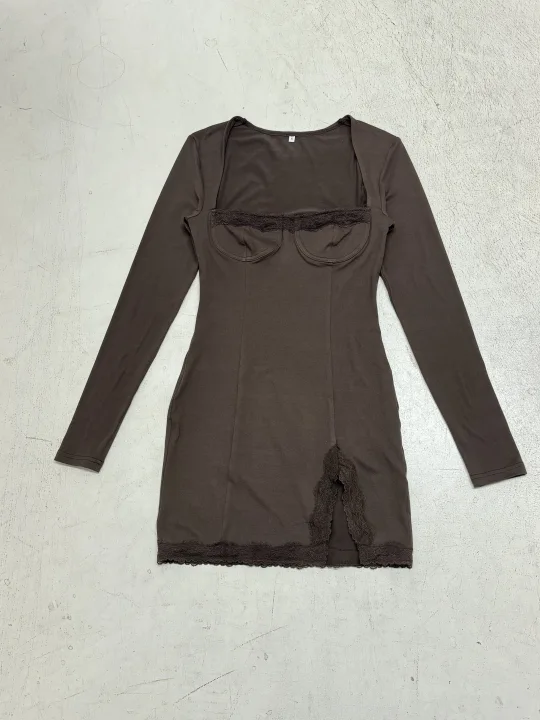 เดรสผ่าข้างทรงเข้ารูปประดับลูกไม้เซ็กซี่สำหรับฤดูใบไม้ผลิและฤดูร้อน - เดรสยาวปานกลางยืดหยุ่นกระชับสัดส่วนสำหรับผู้หญิง