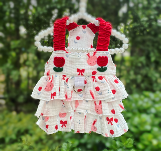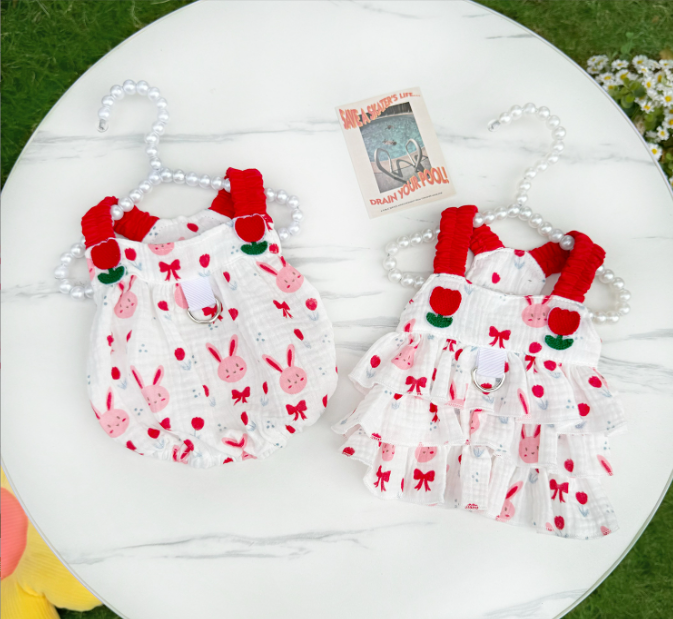 เสื้อผ้าสัตว์เลี้ยงน่ารักระบายอากาศได้สำหรับสุนัขแมวแมวเจ้าหญิงกระโปรงสลิงผ้าฝ้ายตุ๊กตาหมีขมลาย