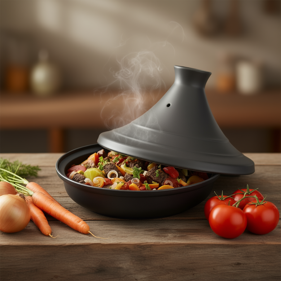 หม้อเซรามิกสีดำขนาด 28 ซม. สำหรับทำอาหารประเภทตุ๋นและทาจีน รุ่นสปริง ทาจีน