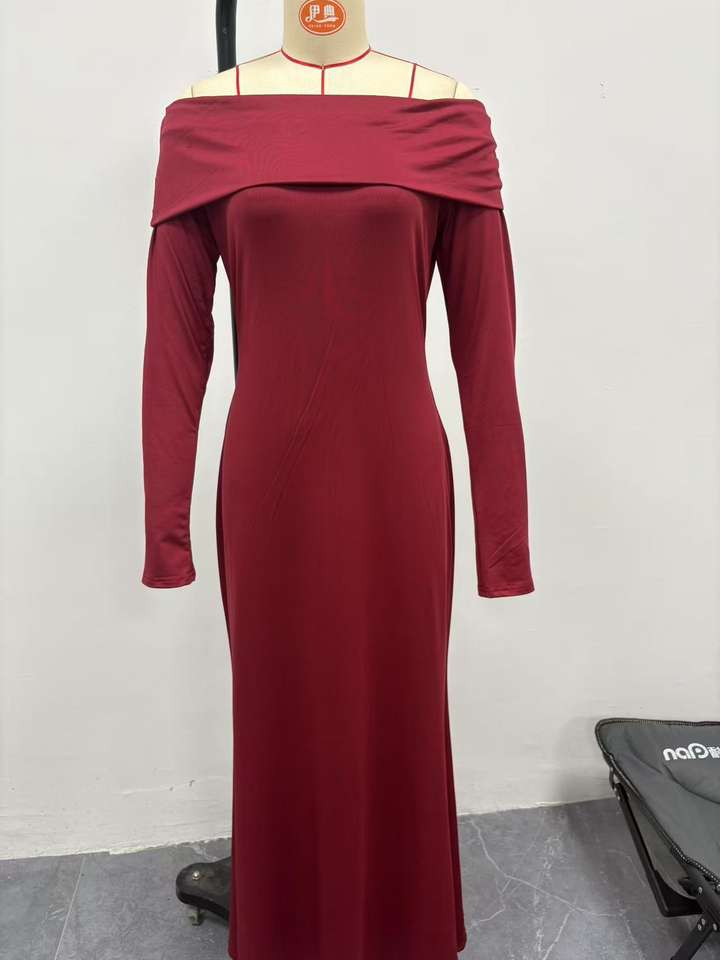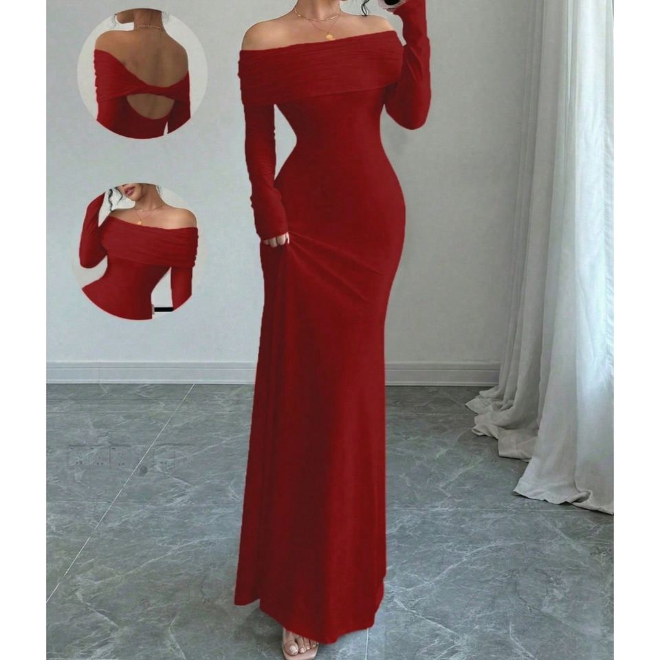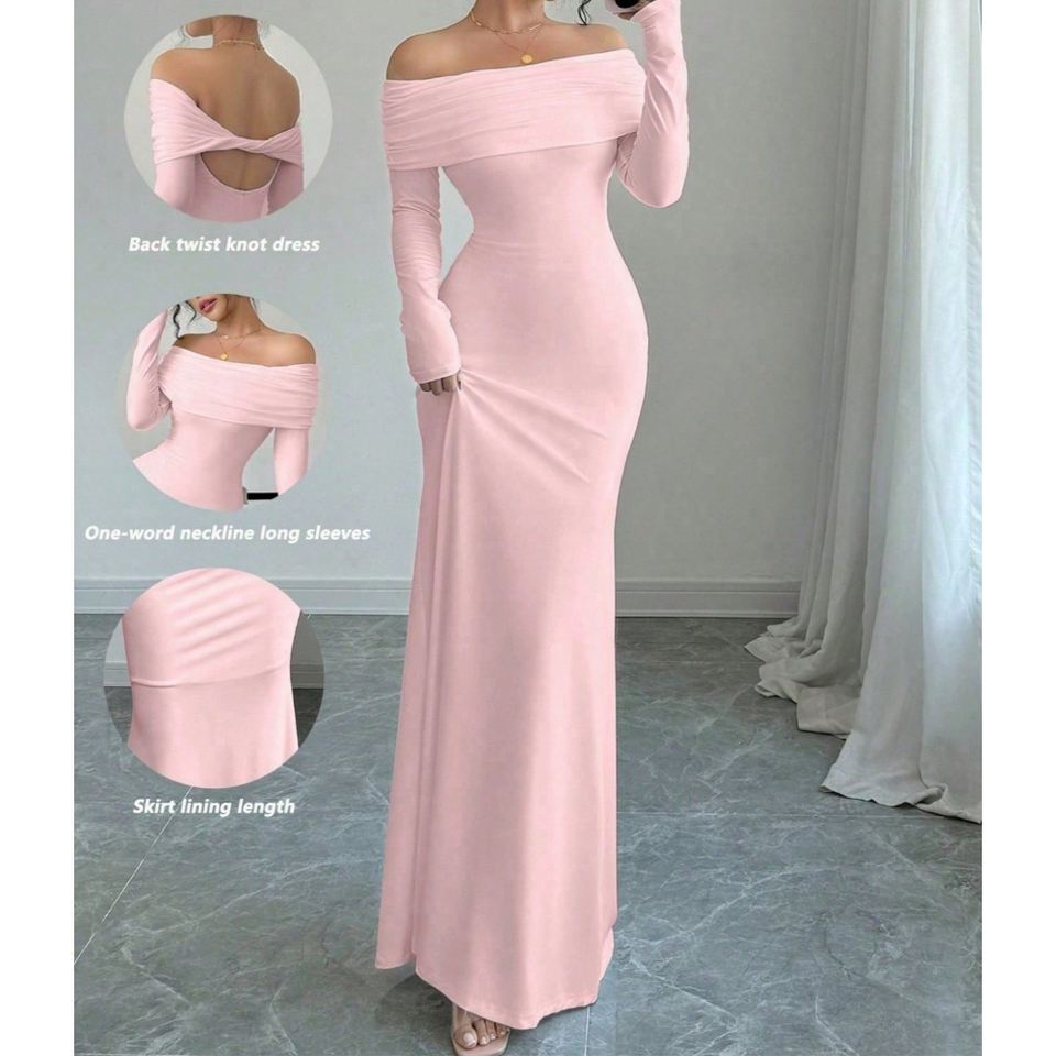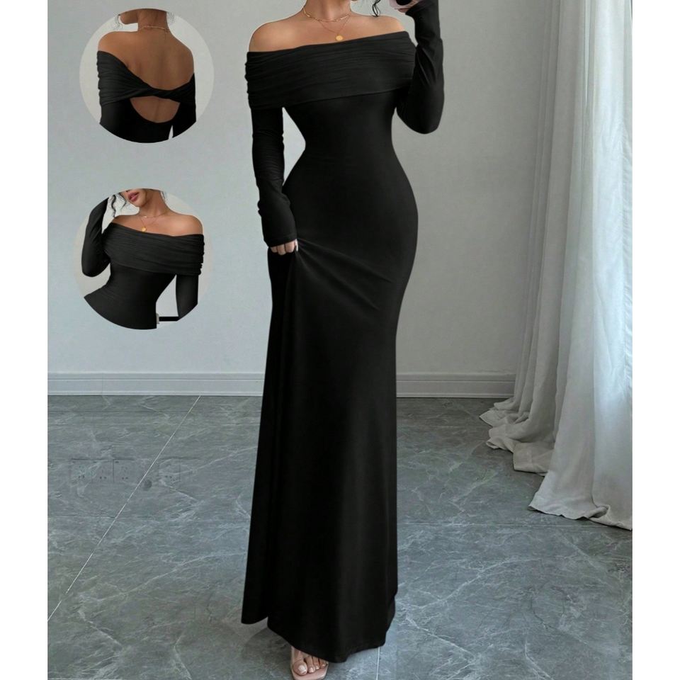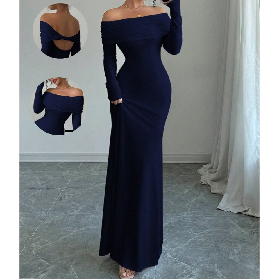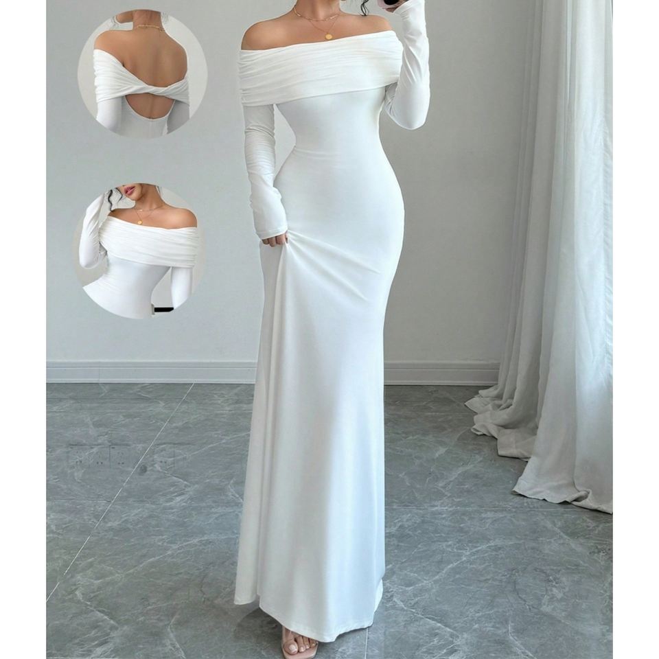 ชุดเดรสราตรีแขนยาวทรงเข้ารูป ดีไซน์เก๋ไก๋ จับจีบระบายช่วงไหล่ สำหรับผู้หญิง ฤดูใบไม้ผลิ