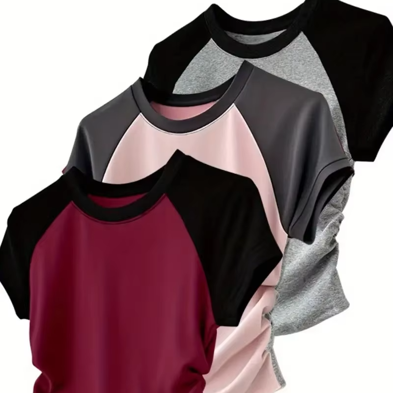 ชุดเสื้อยืดผู้หญิงลายพิมพ์สีสันสดใส แขนสั้น ทรงปกติ ผ้าระบายอากาศดี คอลเลคชั่นชุดลำลอง รับสั่งทำสีได้