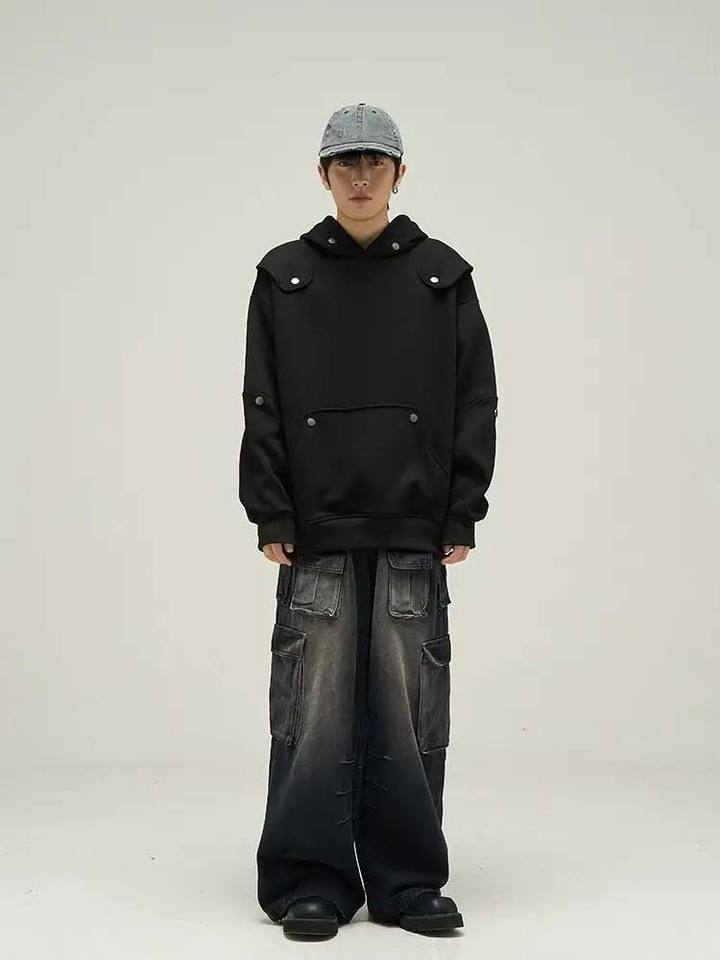 เสื้อมีฮู้ดตกแต่งแนวสตรีทแบบหลวมสำหรับผู้ชายทันสมัยและเป็นแบบอเมริกัน Y2K