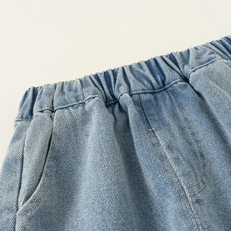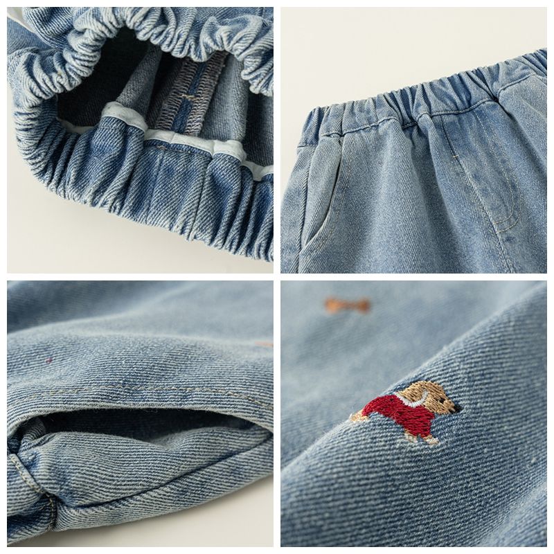 เสื้อผ้าเด็กสำหรับฤดูใบไม้ผลิและฤดูใบไม้ร่วงกางเกงยีนส์ขากว้างปักลายอเนกประสงค์สวมใส่สบายน่ารักสำหรับเด็กผู้หญิง