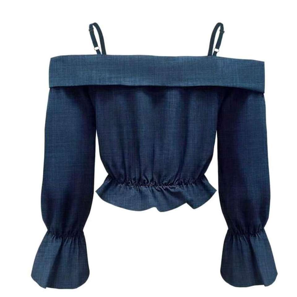 ต่อต้านริ้วรอย, ระบายอากาศได้, เป็นมิตรต่อสิ่งแวดล้อม, เสื้อผู้หญิงคอวีแบบเกาะอก แขนกระดิ่งทรงบาน