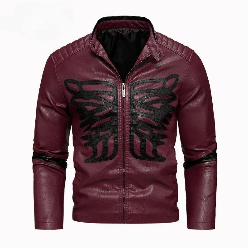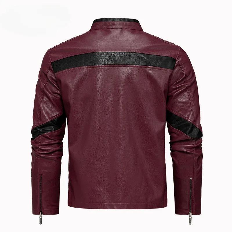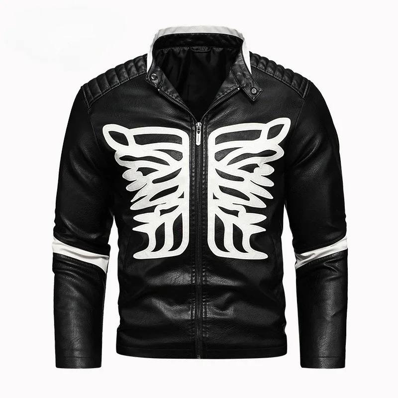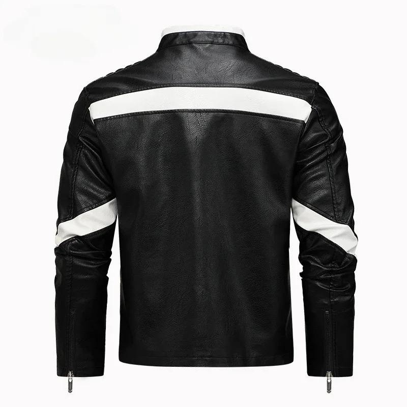 แจ็คเก็ตหนังมอเตอร์ไซค์ผู้ชาย, เสื้อคอตั้งลำลองสีขาวดำเสื้อโค้ทหนัง PU แบบรูดซิปขึ้นฤดูใบไม้ผลิและฤดูใบไม้ร่วง