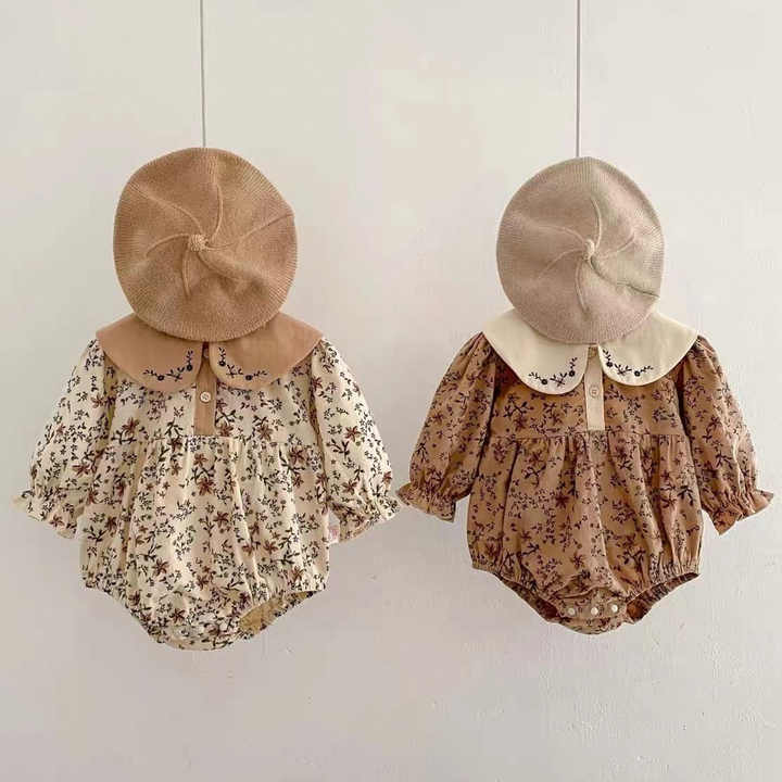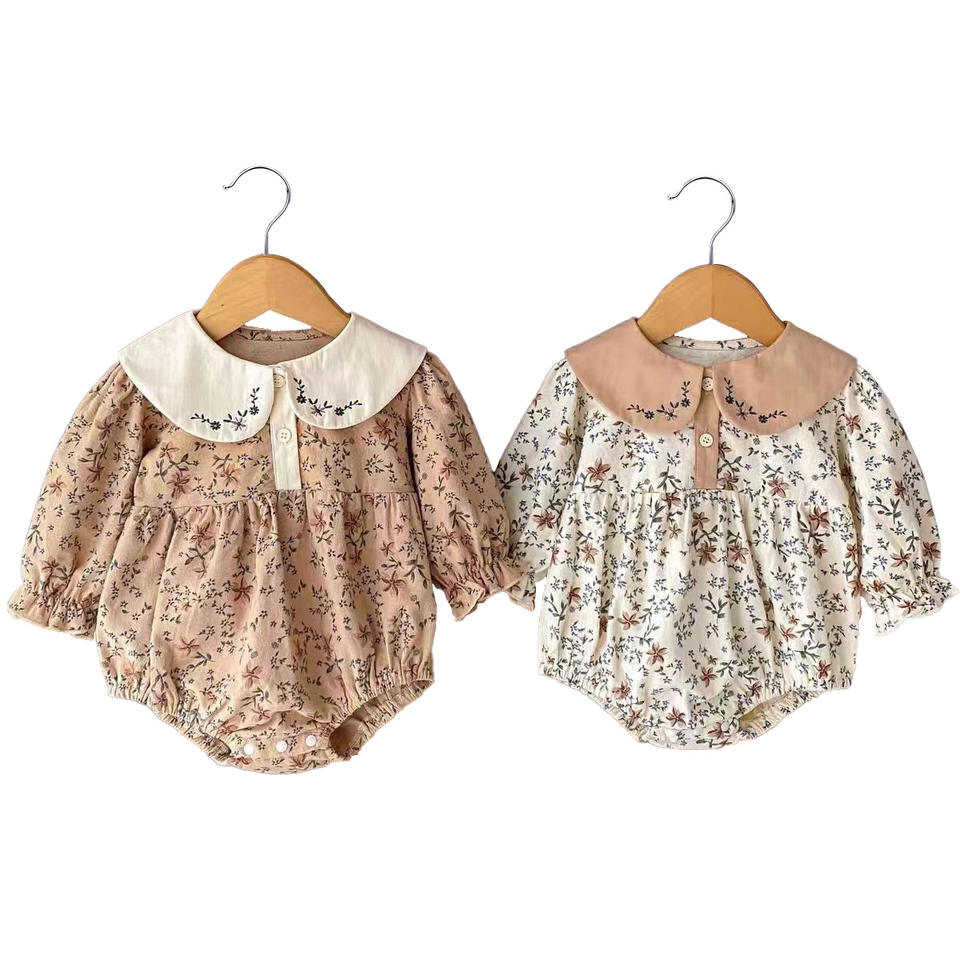 ชุดรอมเปอร์เด็กผู้หญิงสำหรับฤดูใบไม้ผลิและฤดูใบไม้ร่วง พร้อมปกปักลายตุ๊กตา แขนยาว ลายดอกไม้ ผ้าฝ้าย