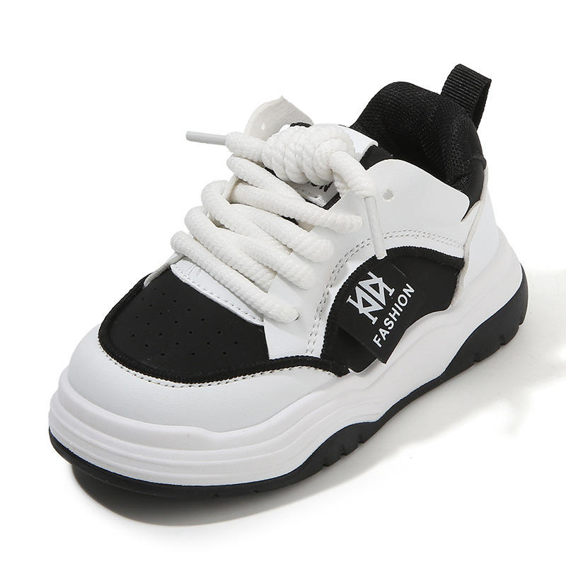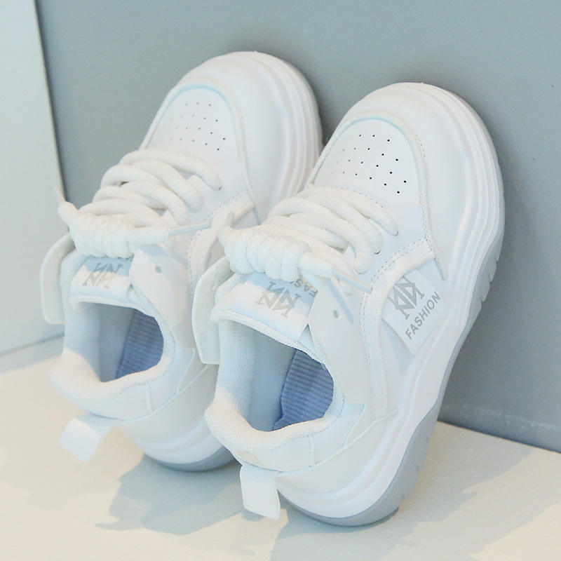รองเท้ากีฬาเด็กฤดูใบไม้ผลิและฤดูใบไม้ร่วงสำหรับเด็กชายและเด็กหญิง สไตล์รองเท้าพ่อ พื้นนุ่มสีขาว ระบายอากาศได้ดี น้ำหนักเบา สวมใส่สบาย