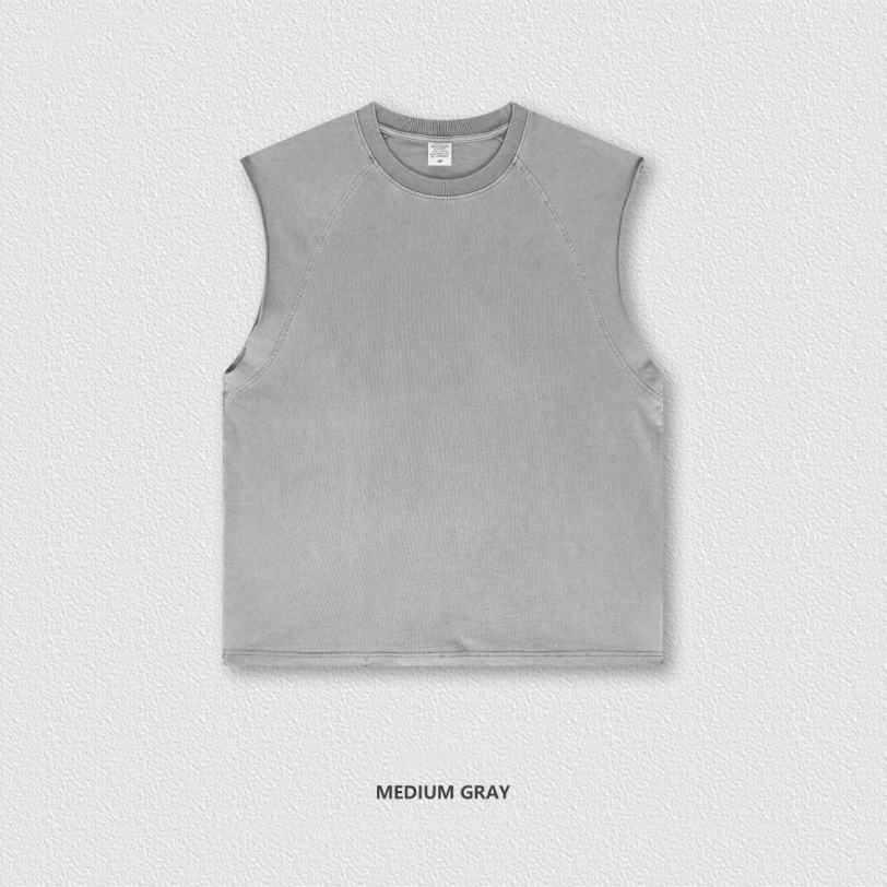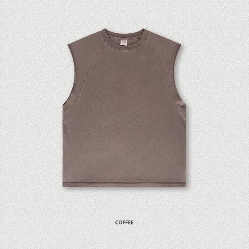 เสื้อกั๊กแขนกุดซักได้275กรัมสำหรับฤดูใบไม้ผลิและฤดูร้อนเสื้อยืดสตรีทสไตล์วินเทจแนวสตรีทแบบอเมริกัน