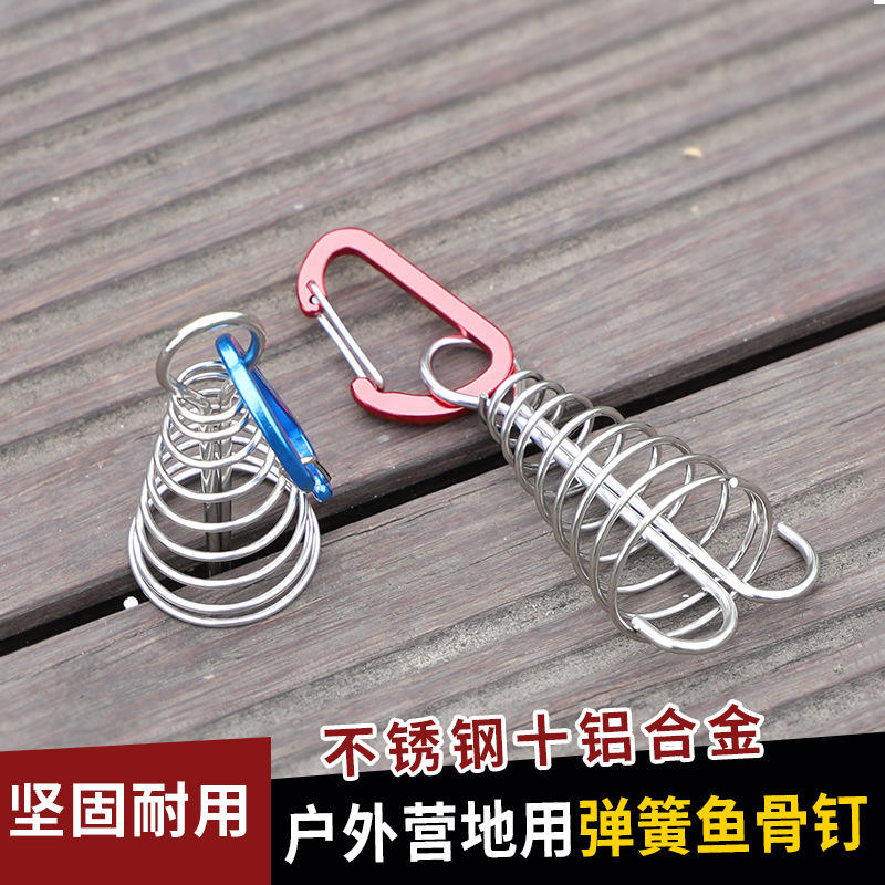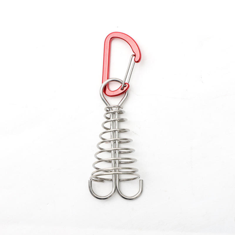 ตะขอเกี่ยวแบบสปริงโหลดสีแดงและสีน้ำเงินสำหรับตั้งแคมป์กลางแจ้ง ตะขอแบบชั้นเดียวพร้อมกลไกสปริง