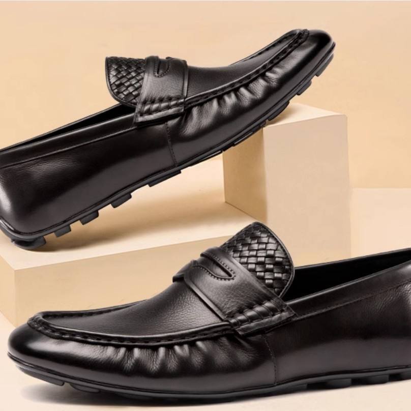 รองเท้าลำลองสไตล์ใหม่สำหรับฤดูใบไม้ผลิ-รองเท้าหนังส้นนิ่มระบายอากาศหนังแท้สำหรับผู้ชายใช้กลางแจ้ง