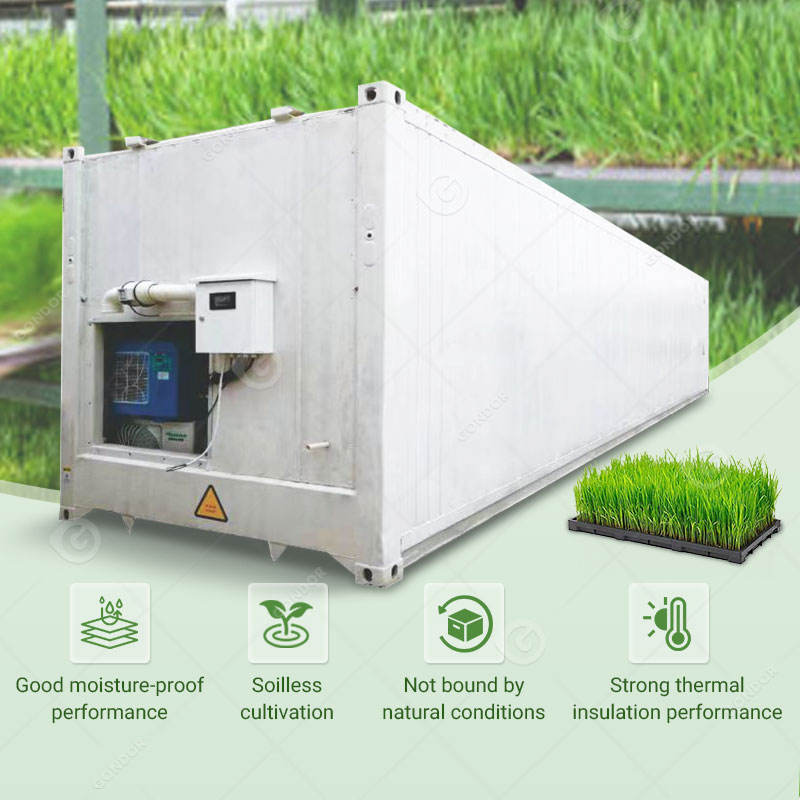 เครื่องปลูกหญ้าข้าวบาร์เลย์แบบไฮโดรโปนิกส์ พร้อมตู้เพาะงอกและสายการผลิต