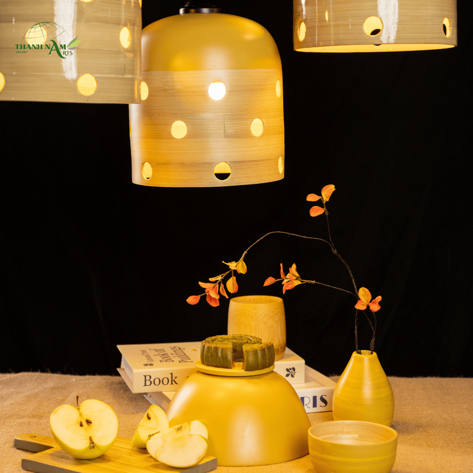 โคมไฟไม้ไผ่สปินโคมไฟโคมไฟไม้ไผ่โคมไฟระย้าทำด้วยมือเป็นมิตรต่อสิ่งแวดล้อม