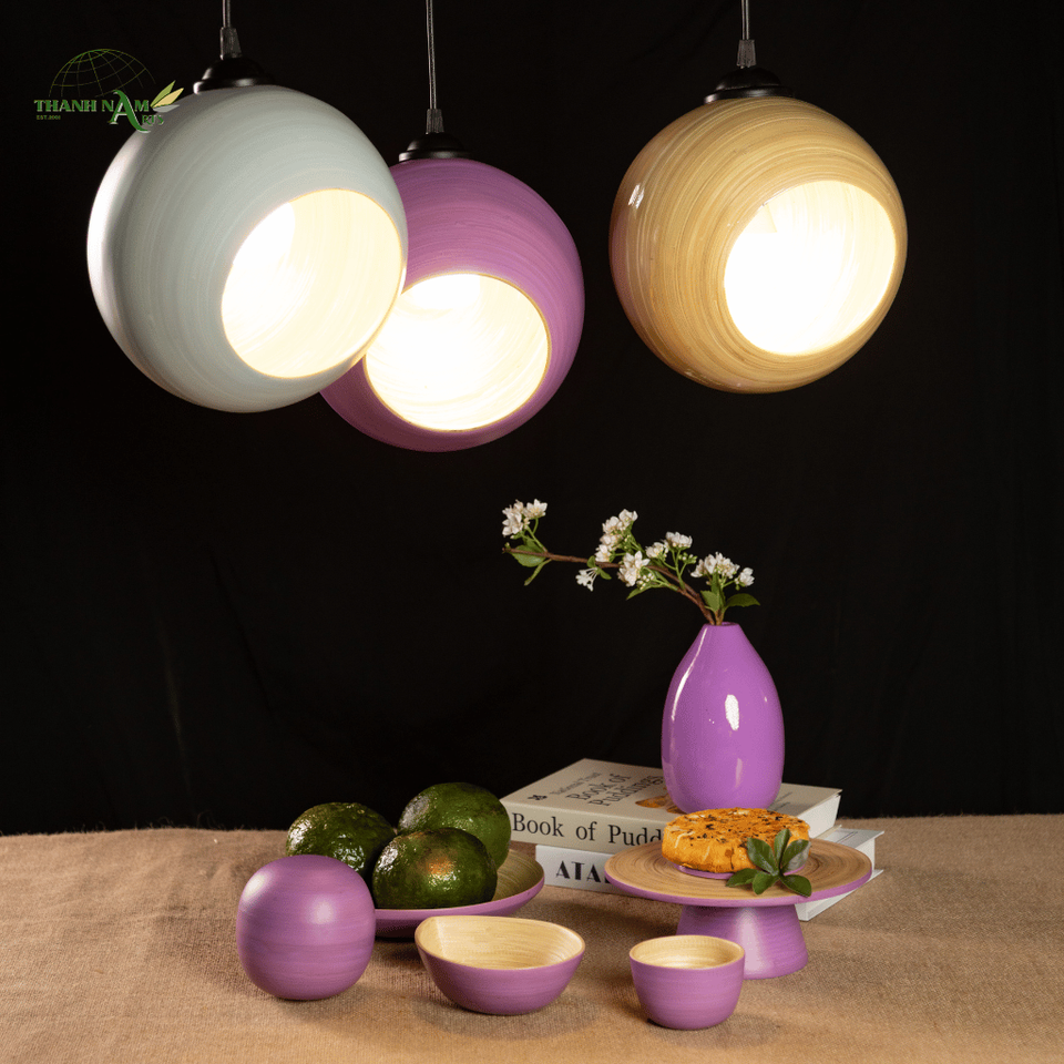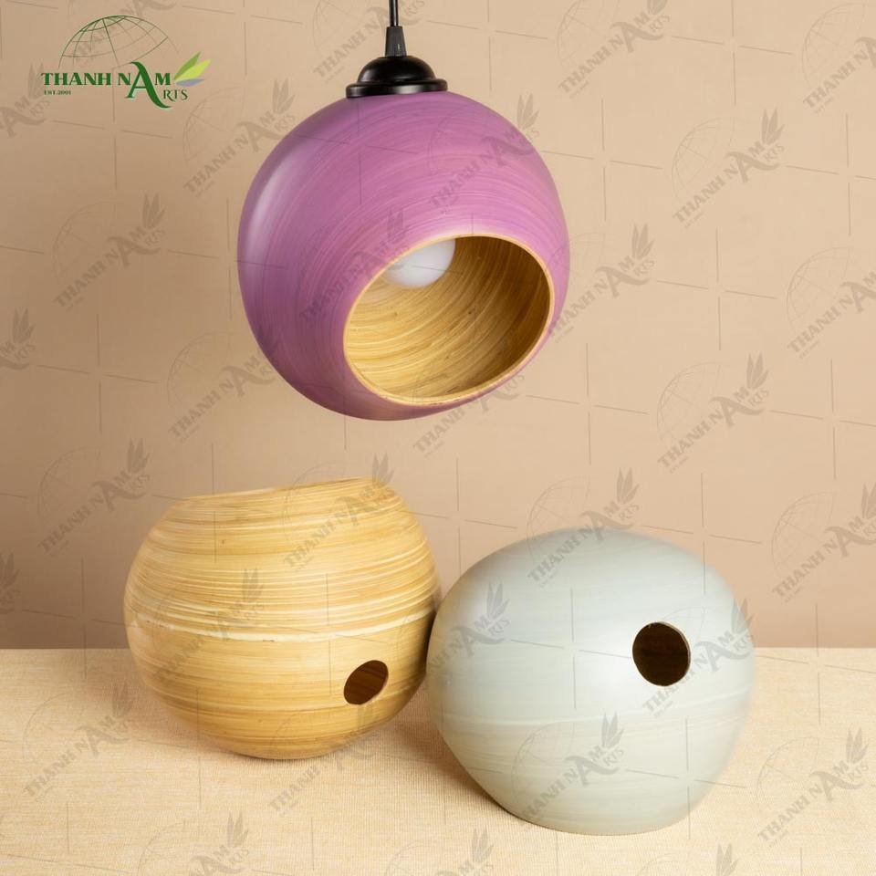 โคมไฟไม้ไผ่ทรงกลม โคมไฟไม้ไผ่ทำมือ โคมไฟแขวนไม้ไผ่ธรรมชาติ สำหรับตกแต่งภายในบ้านและโรงแรม