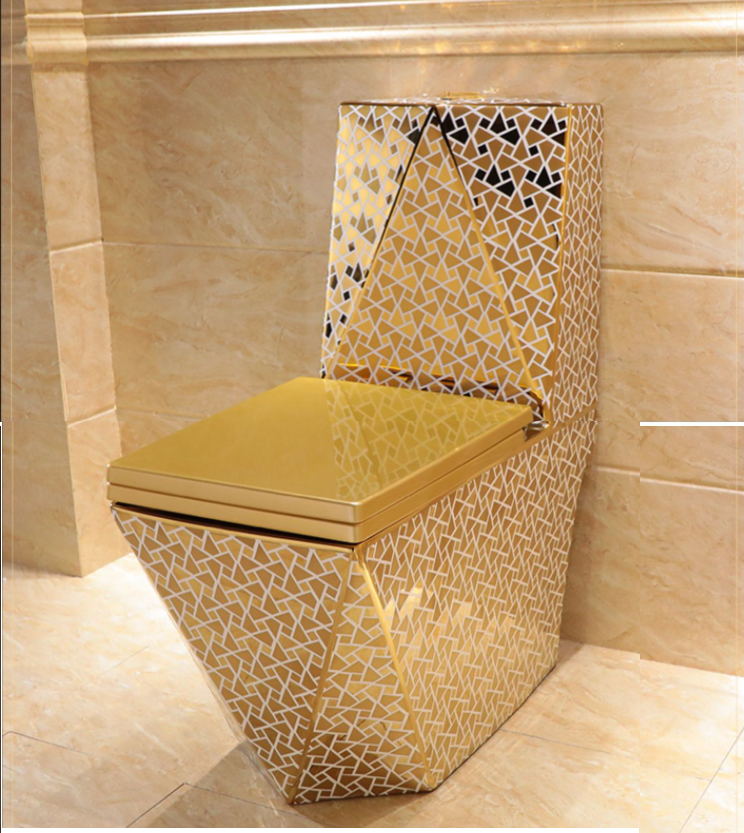 โถสุขภัณฑ์เซรามิกจีนลายเพชรสีทองแบบสอดตาแมว