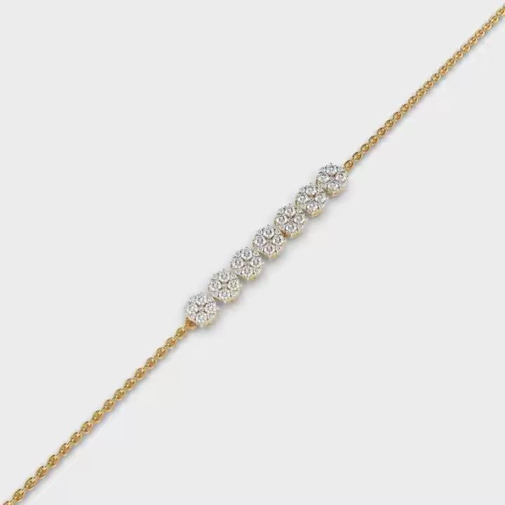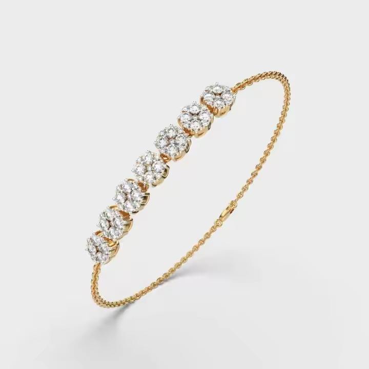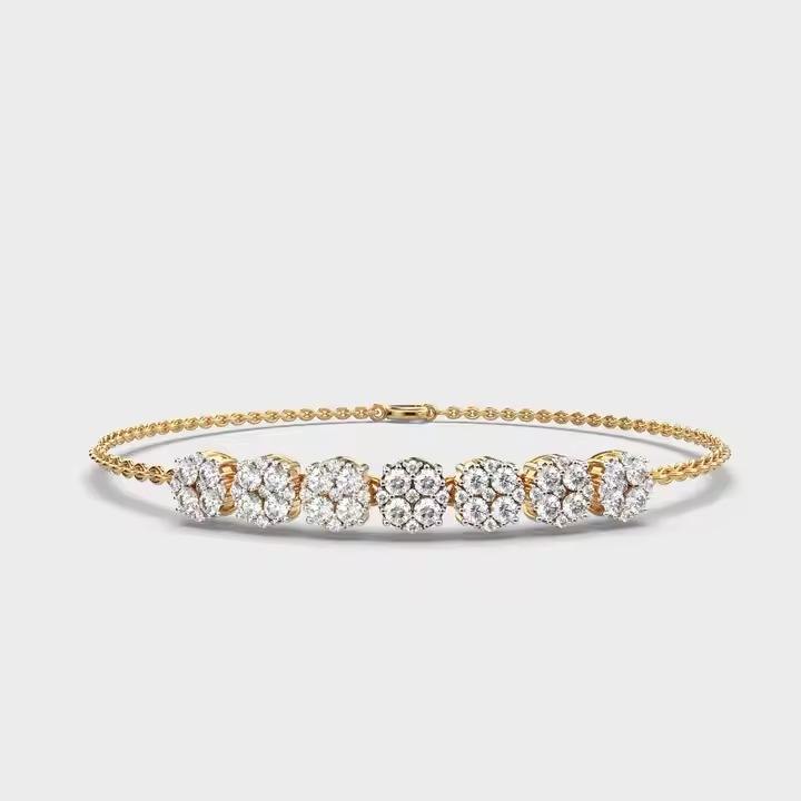 สร้อยข้อมือประดับเพชรแนวทีมเทนนิสคลาสสิกดีไซน์เรียบง่ายกำไลข้อมือประดับเพชรแท้สร้อยข้อมือสีเหลืองทอง18K