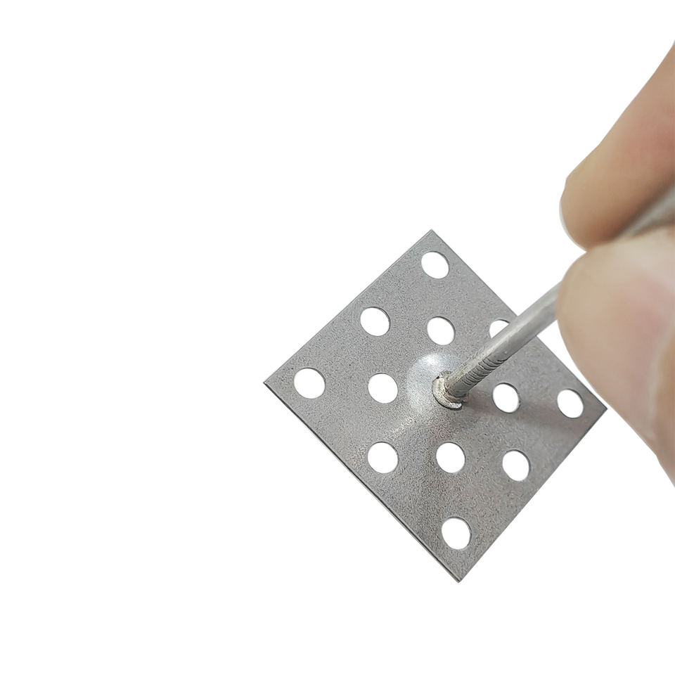 ตะปูยึดฉนวนกันความร้อนแบบมีรูพรุน ฐานสี่เหลี่ยม หนา 0.8 มม. ขนาดก้าน 2.0 มม. สำหรับผนังเบา