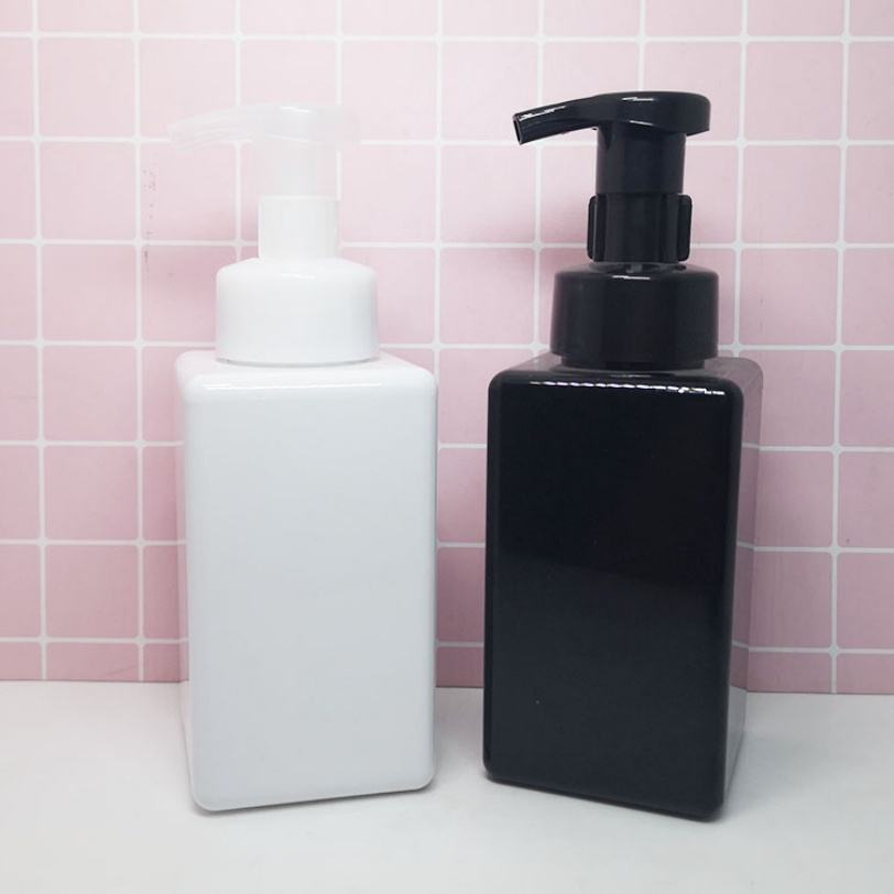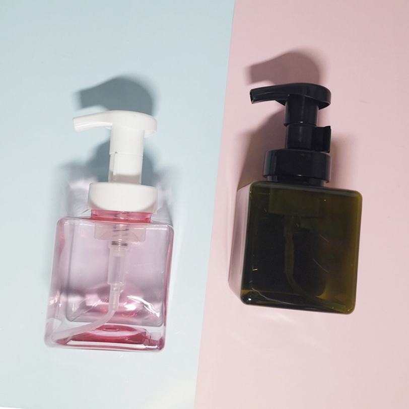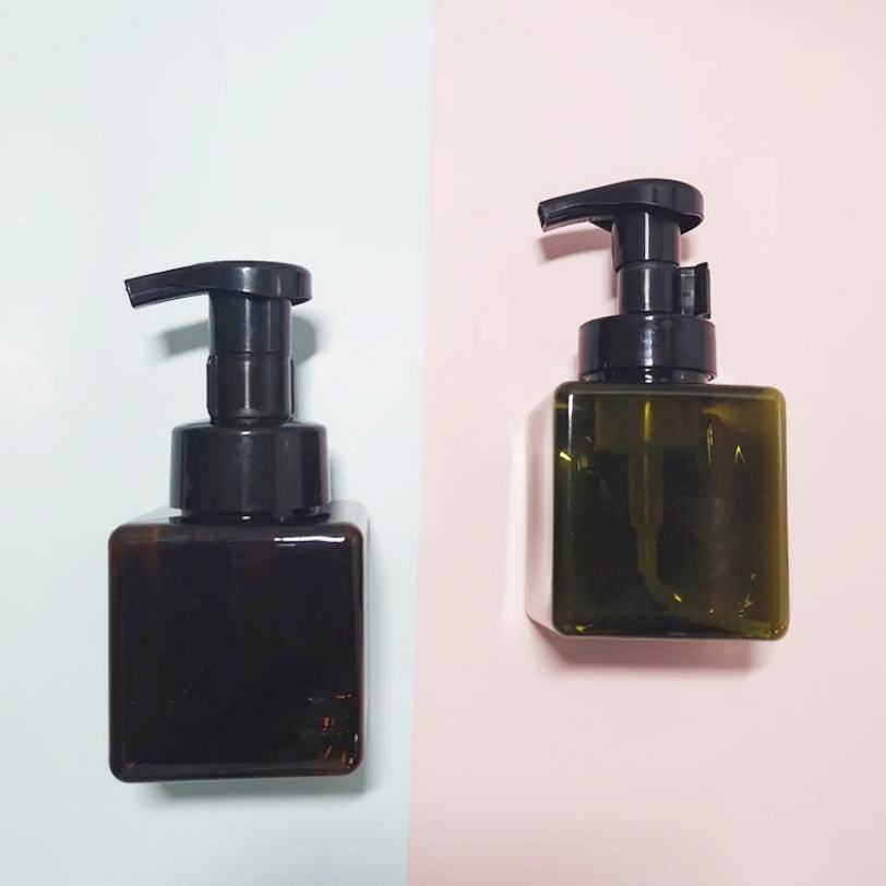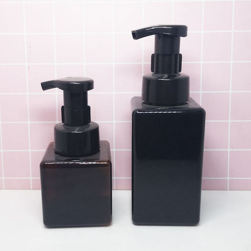 ขวดบรรจุภัณฑ์เครื่องสำอางทรงเหลี่ยม 250 มล. 500 มล. สำหรับล้างหน้า สีเหลืองอำพัน สีดำ สีขาว ขวดโฟม PET ขวดพลาสติกสำหรับผลิตภัณฑ์ดูแลผิว