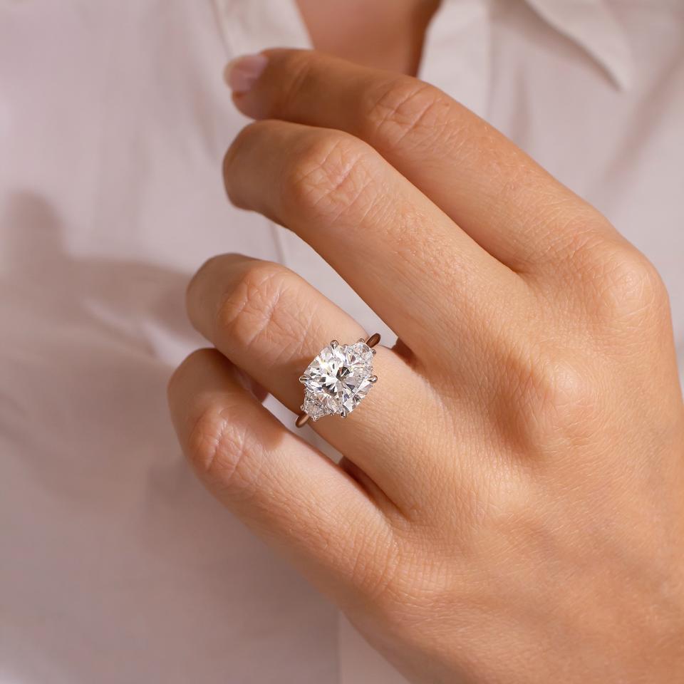 แหวนหมั้นเพชรโมอิสขนาด10มม. ทรงสี่เหลี่ยมตัดเป็นสามชิ้น | ด้านข้างเป็นรูปสี่เหลี่ยมคางหมูทองขาวชุบเครื่องประดับสำหรับงานแต่งงานที่ดีสำหรับผู้หญิง
