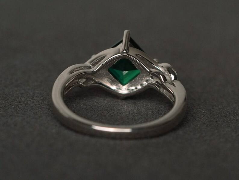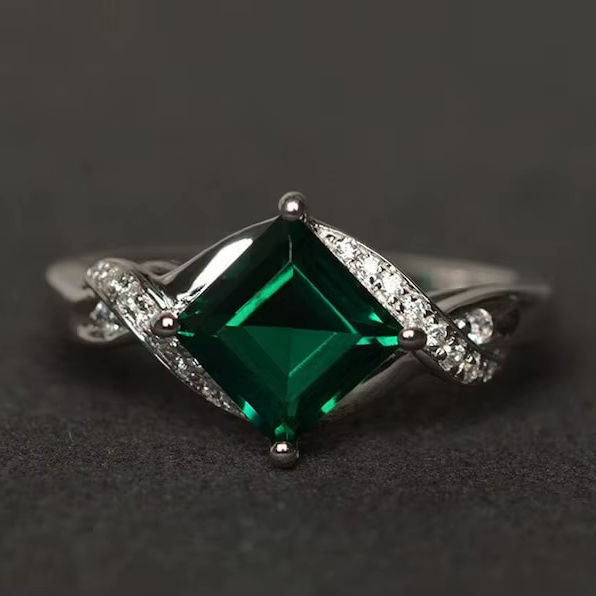 แหวนมรกตตัดสี่เหลี่ยมแหวนเงินสเตอร์ลิงแหวนหมั้นมรกตสำหรับงานวันเกิดเครื่องประดับมรกตชั้นดี