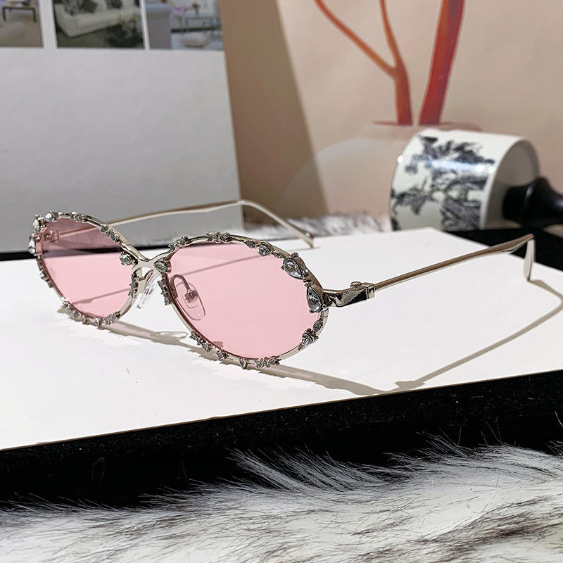 Square Diamond-Studded Flat-Lens UV400 Protection Full Rim Blue Light Blocking Glasses Frame Distinctive Elegance Metal Korean