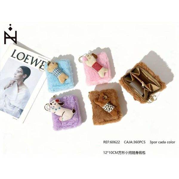 กระเป๋าสตางค์สี่เหลี่ยมลายสุนัข 12x10 ซม. พวงกุญแจตุ๊กตาขนปุย กระเป๋าใส่เหรียญ