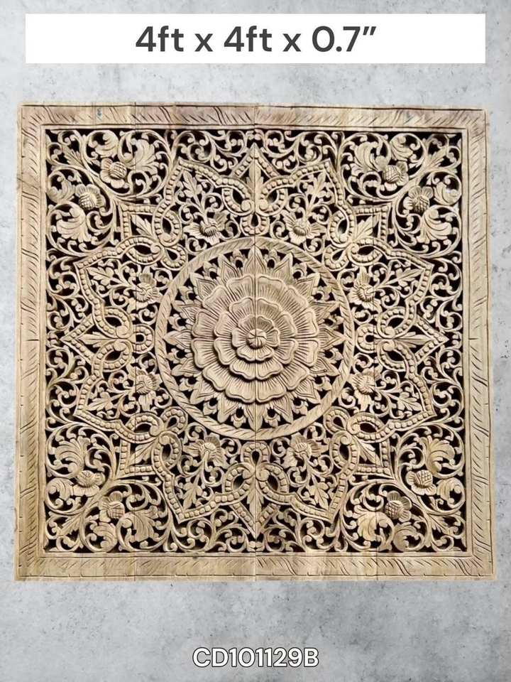แผ่นไม้สักสลักลายสี่เหลี่ยมจัตุรัส ขนาด 4 ฟุต สำหรับแขวนผนัง ทำด้วยมือ 100% แข็งแรง ทนทาน เป็นมิตรกับสิ่งแวดล้อม สไตล์คลาสสิก TH