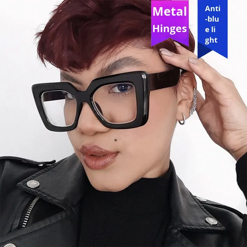 กรอบแว่นตาทรงเหลี่ยมขนาดใหญ่ สไตล์พังก์สำหรับผู้หญิง ป้องกันแสงสีฟ้า รุ่นเดียวกับที่คนดังในอินเทอร์เน็ต สามารถใส่เลนส์ได้