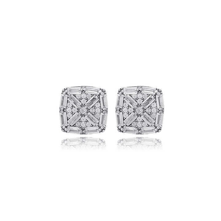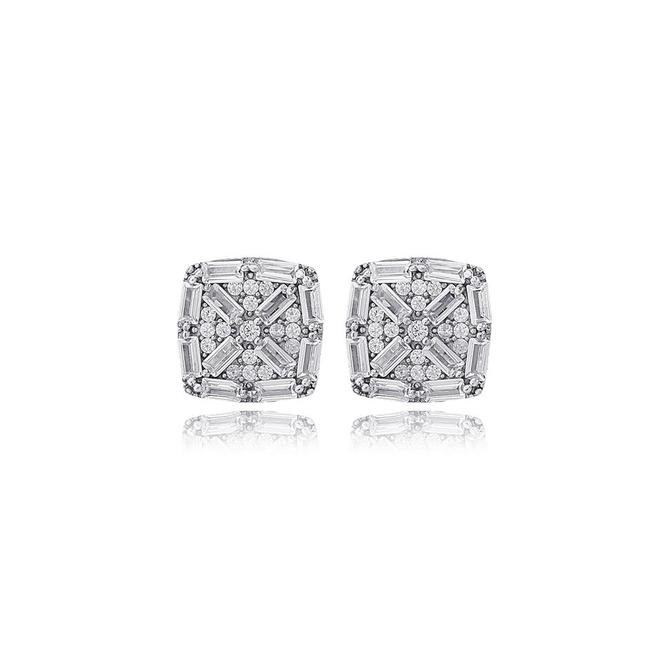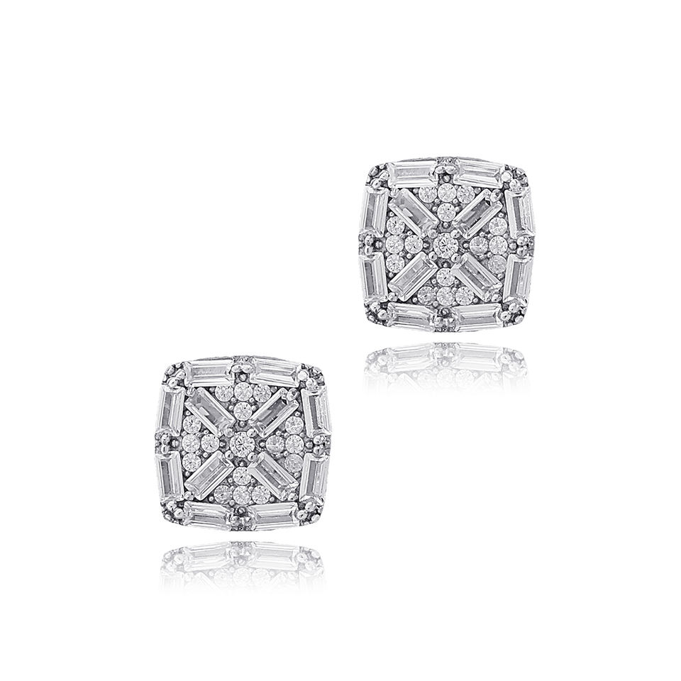 ต่างหูเงินแท้ 925 ชุบทอง ประดับเพชรทรงบาแกตต์ ดีไซน์เรขาคณิตสี่เหลี่ยม สำหรับงานครบรอบ ขายส่ง เครื่องประดับคุณภาพ