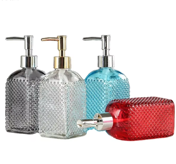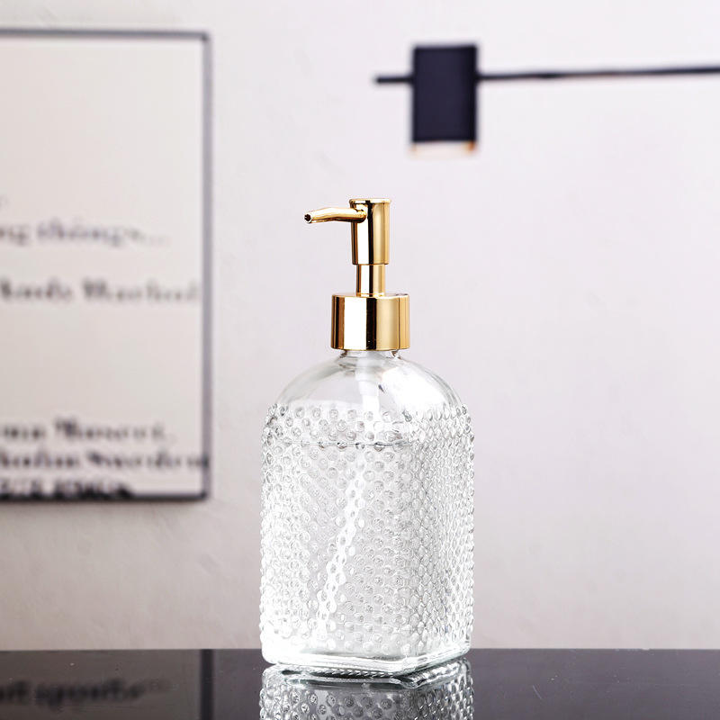 ภาชนะแก้วเปล่าทรงสี่เหลี่ยมพร้อมปั๊มแบบกด: เหมาะสำหรับเจลล้างมือใช้ในห้องน้ำและใส่เครื่องสำอางแชมพู