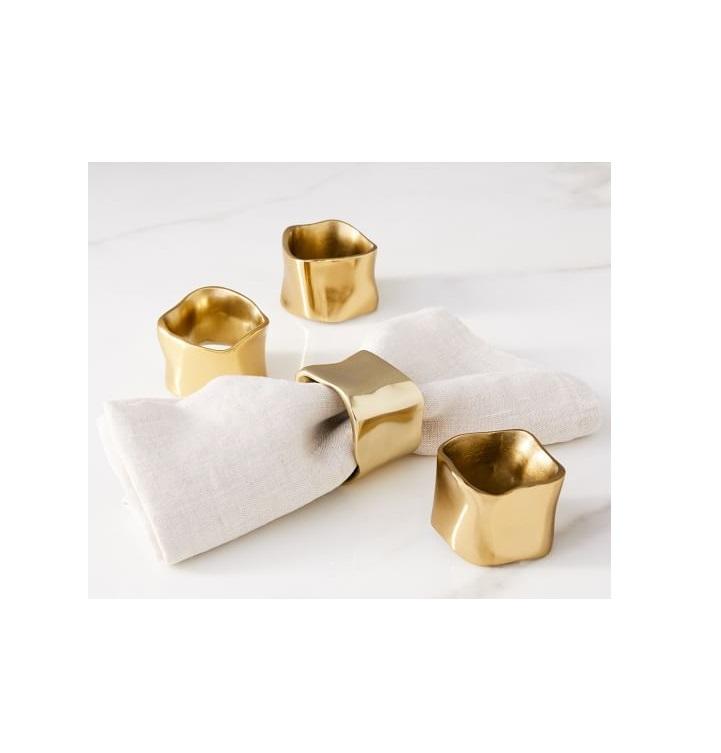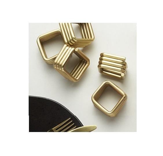 ชุดห่วงรัดผ้าเช็ดปากสีทองสี่เหลี่ยม6ดีไซน์รูปทรงเรขาคณิตสำหรับจัดแต่งโต๊ะอาหารหรูหราและหรูหรา