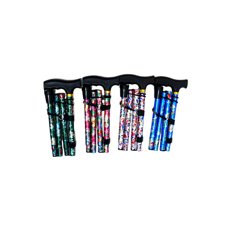 ไม้เท้าพับได้ทรงสี่เหลี่ยมพิมพ์ลาย อลูมิเนียมอัลลอยด์ ปรับระดับได้ ไม้เท้าเดินป่าแบบยืดหดได้ พร้อมปลายยาง