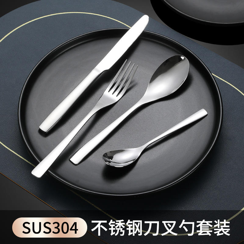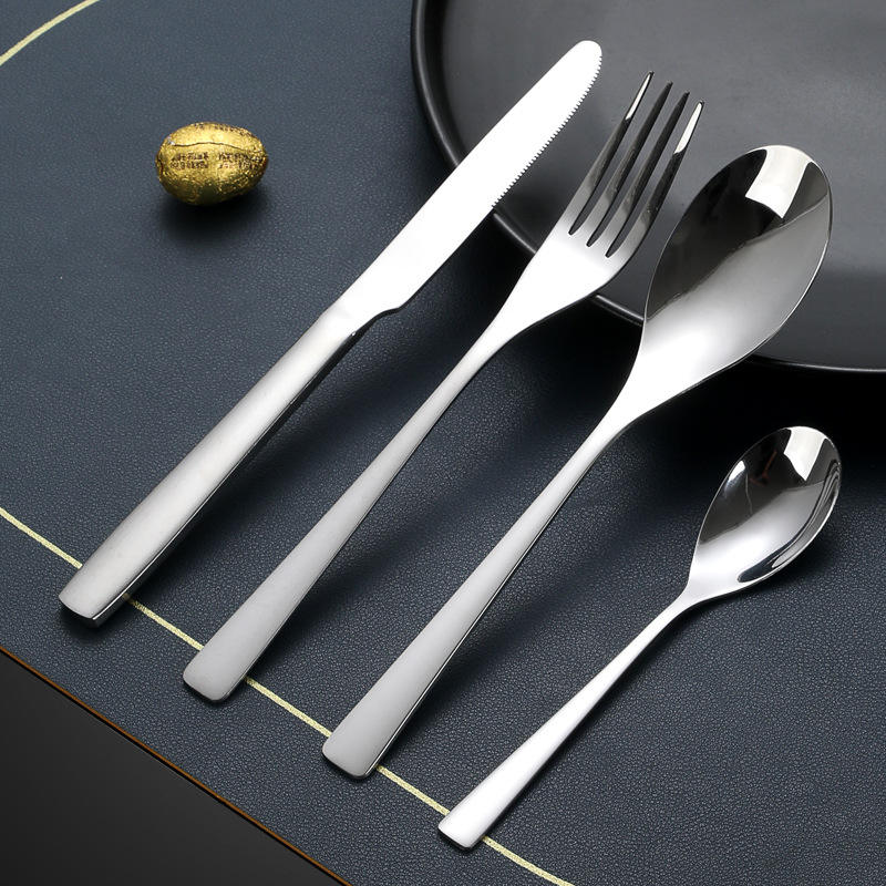 ชุดช้อนส้อมสแตนเลสทรงสี่เหลี่ยม ทนทาน สไตล์ตะวันตก สำหรับงานเลี้ยง ใช้สำหรับผู้ใหญ่