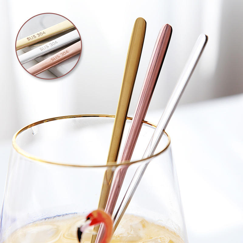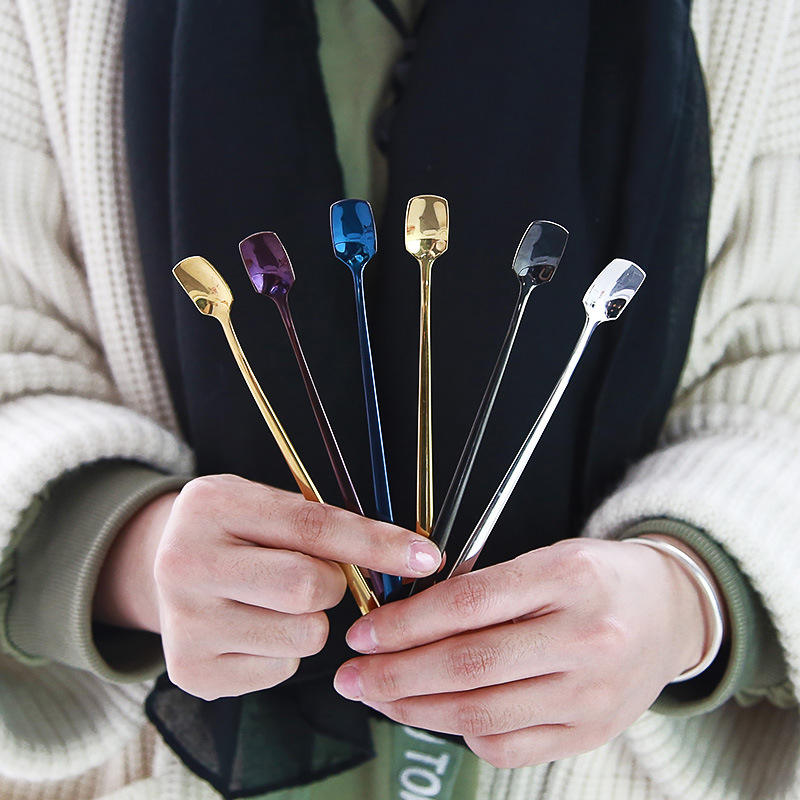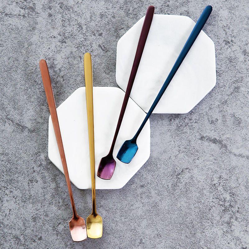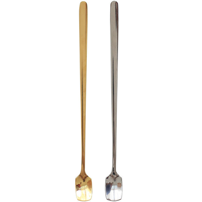 ช้อนคนกาแฟสแตนเลส 304 หัวเหลี่ยม ด้ามยาว ใช้ซ้ำได้ ช้อนขนมหวานสำหรับใช้ในบ้าน สีดำล้วน