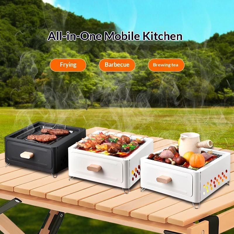 เตาปิ้งย่างไร้ควันอเนกประสงค์สไตล์ญี่ปุ่นทรงสี่เหลี่ยม สำหรับชุดชงชา ทำอาหาร ตั้งแคมป์ ใช้ในบ้าน ลานบ้าน ปิ้งย่างกลางแจ้ง