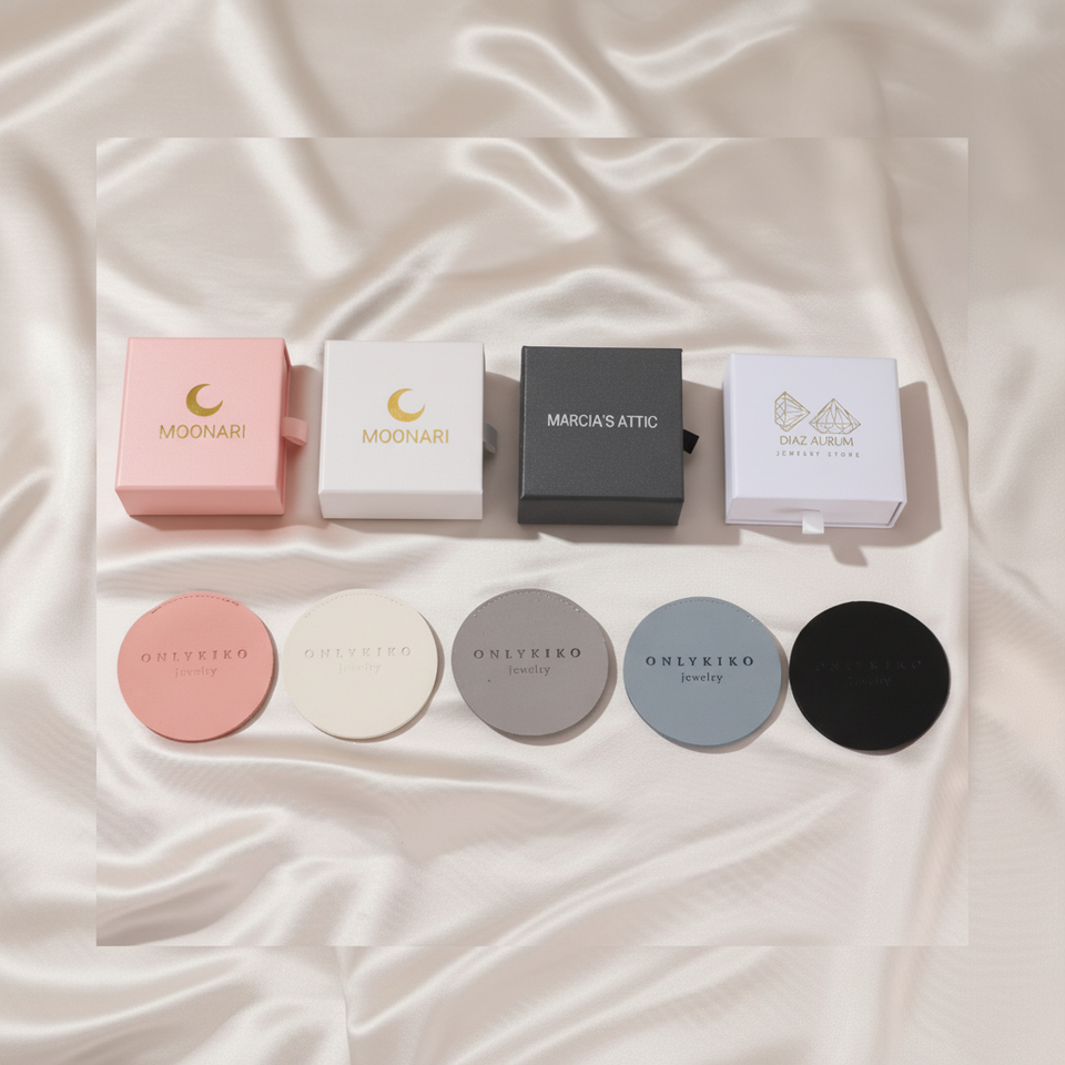 กล่องกระดาษใส่เครื่องประดับทรงสี่เหลี่ยมพร้อมซิปปิด และถุงบรรจุภัณฑ์ขนาด 7x7 ซม. สำหรับชุดกล่องของขวัญโชว์เครื่องประดับ