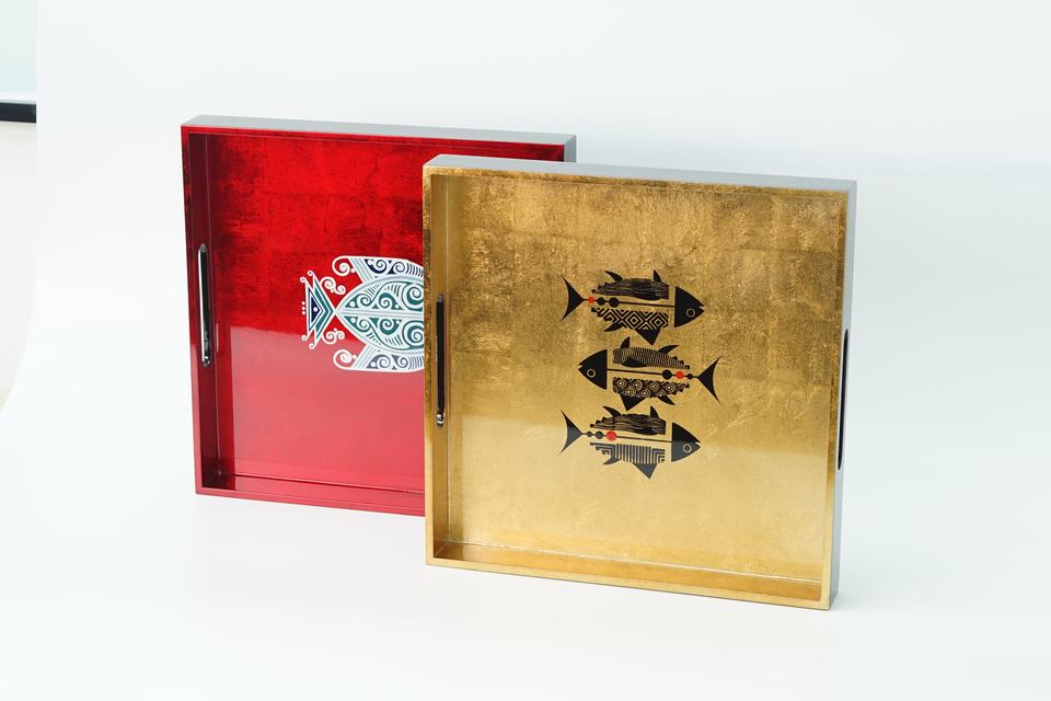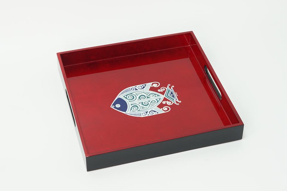 ถาดเคลือบแลคเกอร์ทรงสี่เหลี่ยมผืนผ้าสำหรับตกแต่งบ้านโรงแรมร้านอาหารสไตล์โมเดิร์นหรูหรา