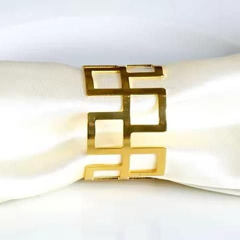 แหวนรัดผ้าเช็ดปากลายเลเซอร์สี่เหลี่ยม สีทอง ดีไซน์โบราณ ทำด้วยมือจากทองเหลืองโบราณ แหวนรัดผ้าเช็ดปากแบบมีลวด