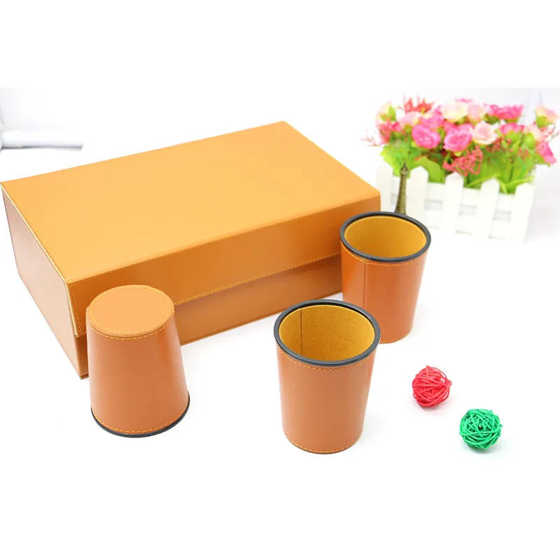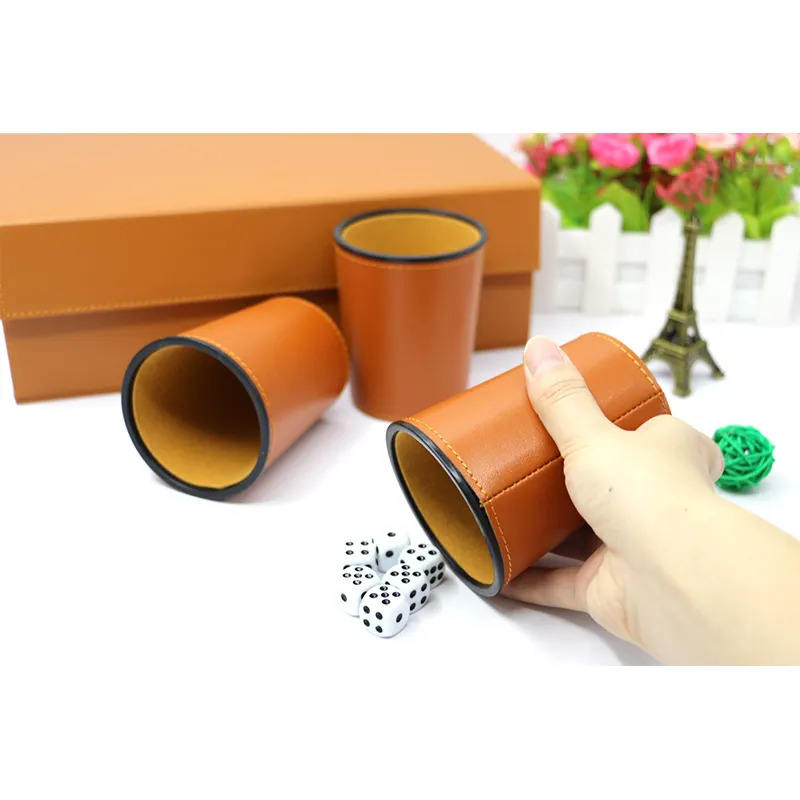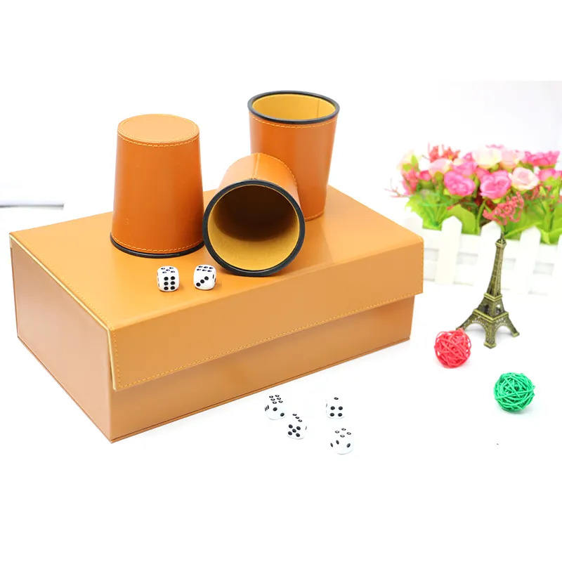 ชุดกล่องถ้วยลูกเต๋าหนังสี่เหลี่ยมพร้อมซับในด้วยผ้าสักหลาดชุดถ้วยหนังลูกเต๋าตามสั่ง