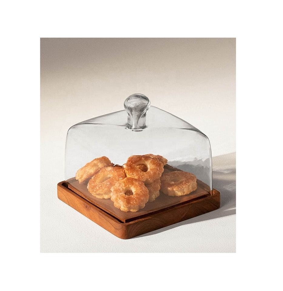 ผู้ค้าส่งเครื่องมือเค้กอลูมิเนียมอัลลอยยืนเค้กบ้านและตกแต่งยืนเค้กไม้มะม่วงสแควร์พร้อมฝาปิด