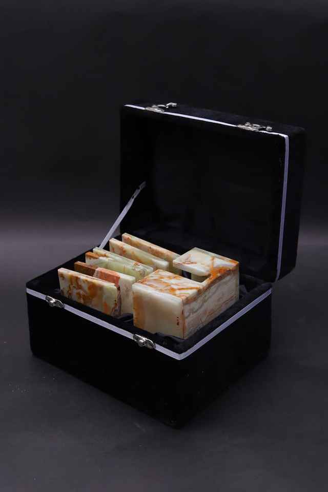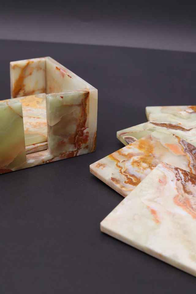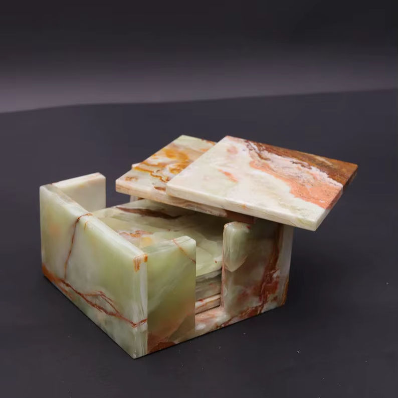 Square Multi Green Onyx Marble Coaster Set Elegant Natural Stone Home Decor
