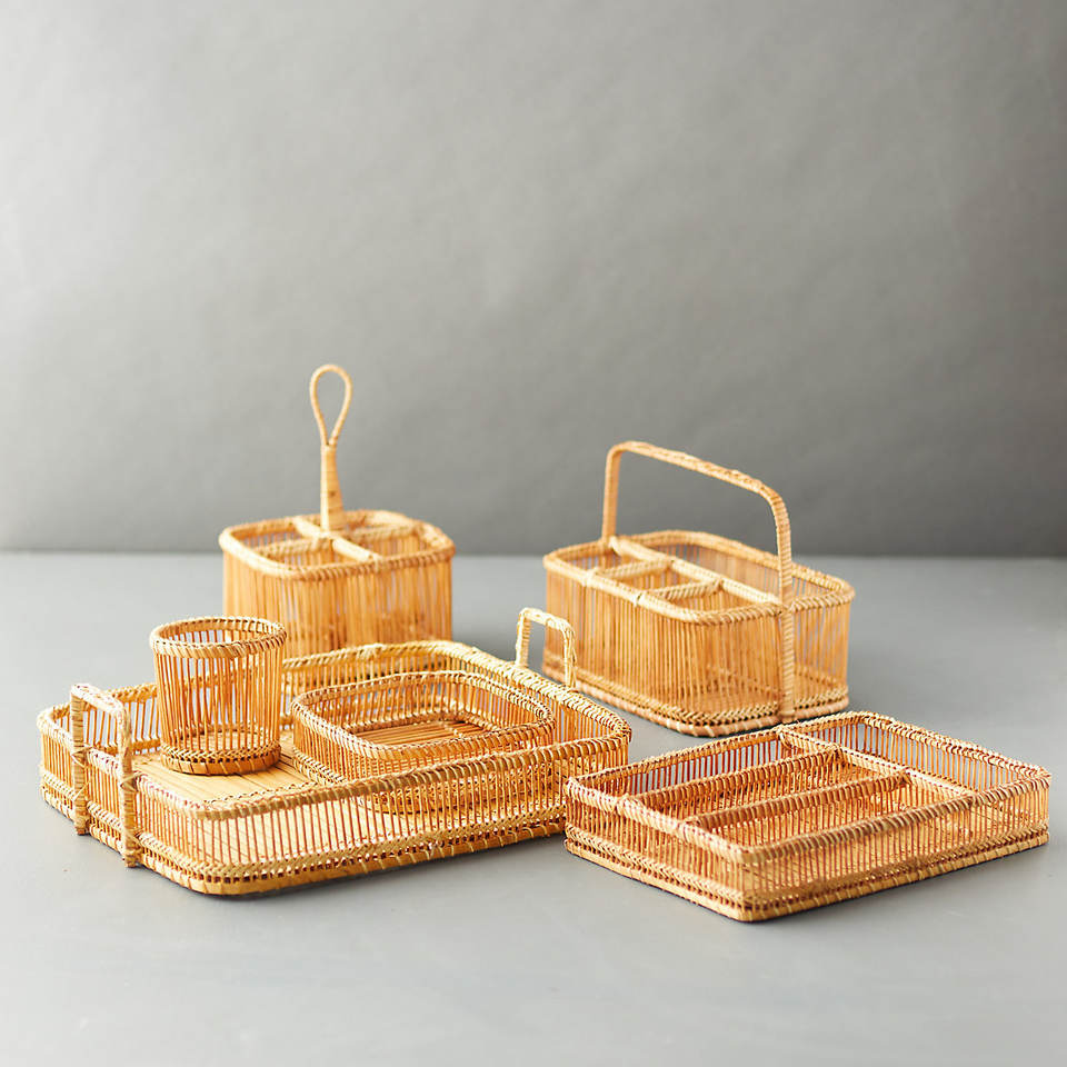 ตะกร้าหวายทรงสี่เหลี่ยมสำหรับใส่ขวด ที่ใส่ช้อนส้อม ตะกร้าเก็บของหวายจากเวียดนาม
