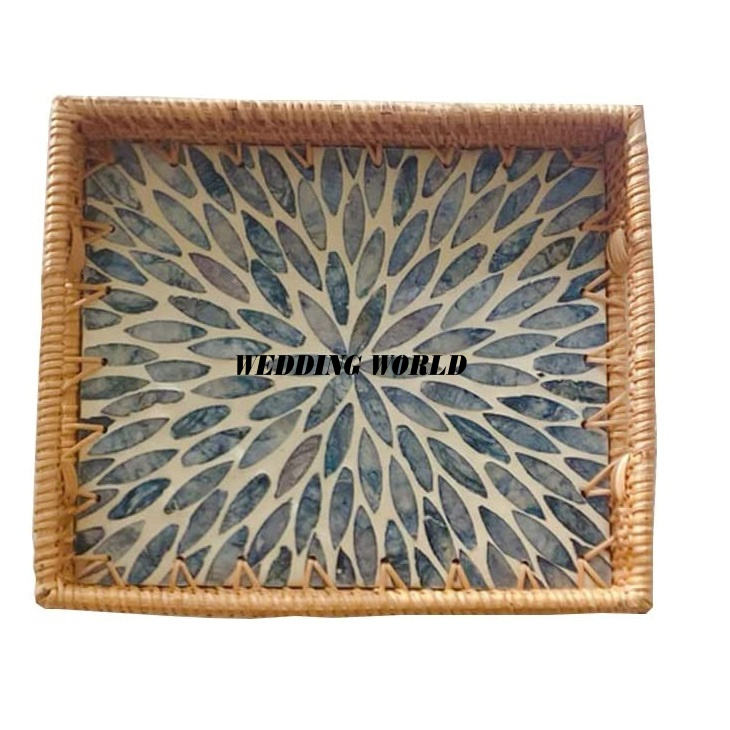 ถาดเสิร์ฟหวายทรงสี่เหลี่ยมถาดเสิร์ฟช็อคโกแลตงานแฮนด์เมดคุณภาพระดับพรีเมียมถาดเสิร์ฟพร้อมหวายสำหรับตกแต่ง