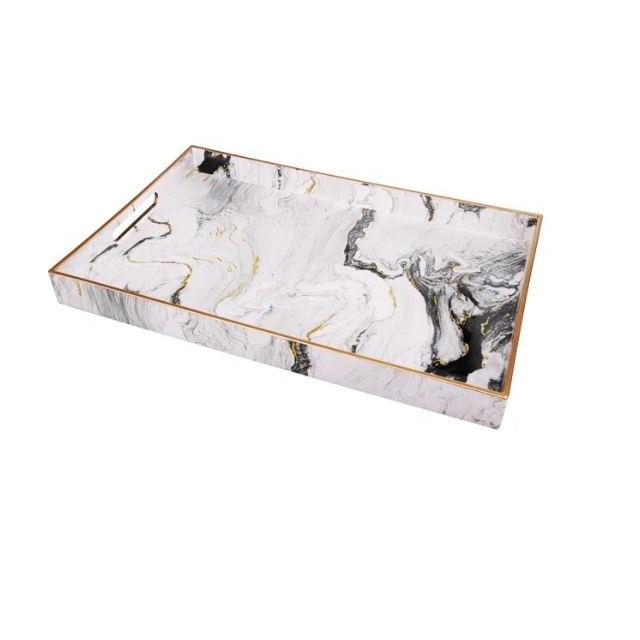 ถาดหินอ่อนสำหรับเสิร์ฟทรงสี่เหลี่ยมถาดสำหรับตกแต่งบ้านถาดอุปกรณ์ตกแต่งโรงแรม