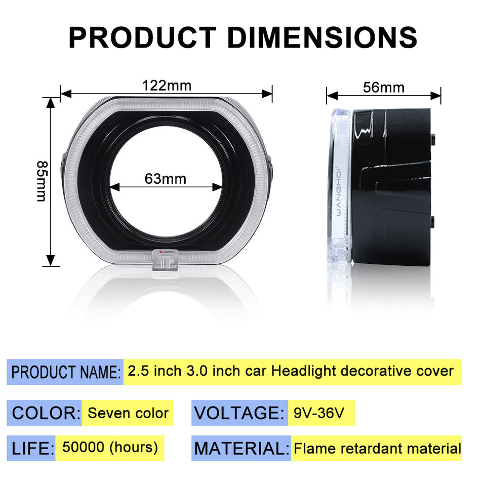 ฝาครอบตกแต่งวงแหวนไฟ LED Angel Eyes ขนาด 3 นิ้ว 2.5 นิ้ว รุ่น Square Shade สำหรับดัดแปลงไฟหน้ารถยนต์ 12V H4 ใช้ได้กับรถยนต์ทั่วไป