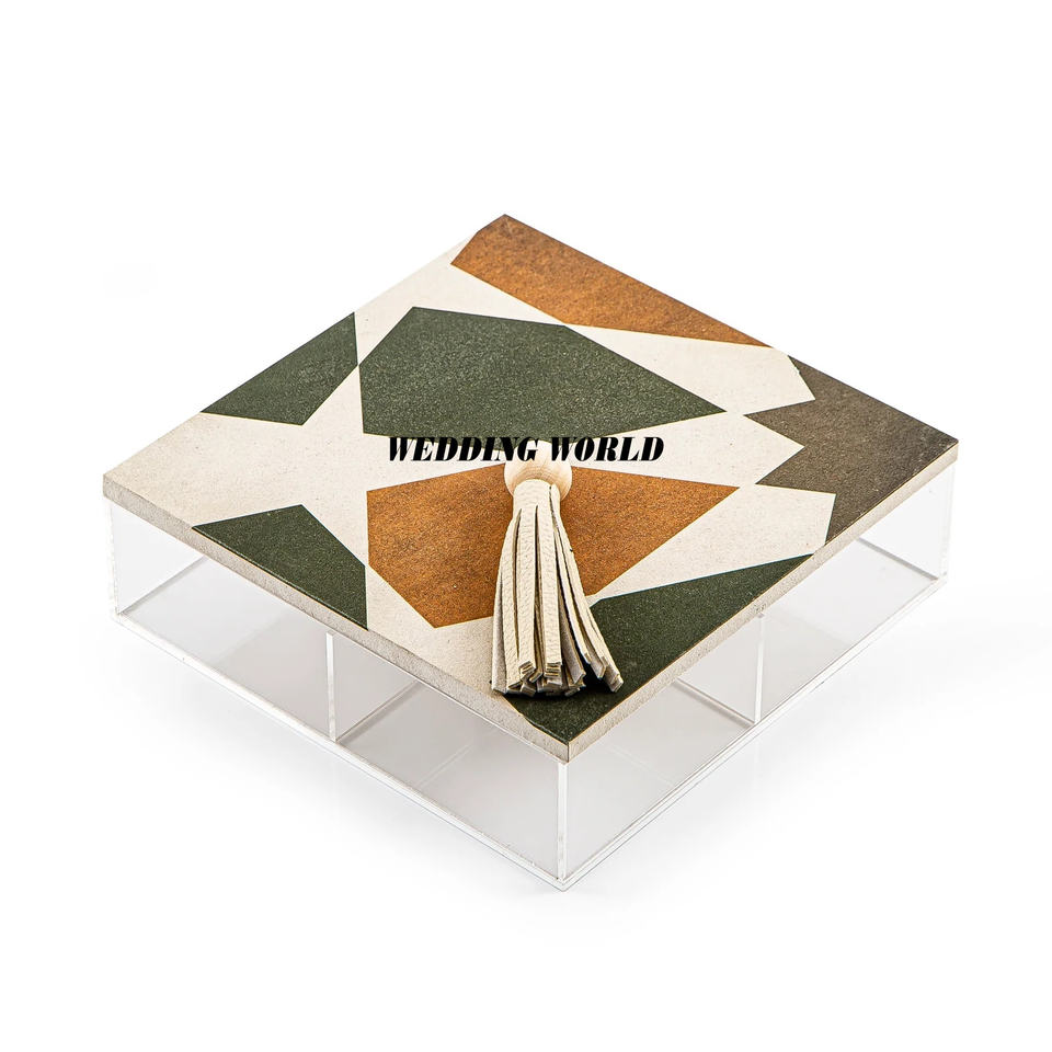 โถใส่ลูกกวาดอะคริลิครูปทรงสี่เหลี่ยมสินค้าใหม่ทำมือโถผลไม้แห้งอะคริลิกตกแต่งแฟนซีขายดี